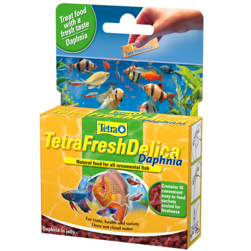 מזון חטיפים טבעי המכיל סרטני דפניה במצב ג'לי ומועשר בוויטמינים, מיקרומינרלים, חלבונים ושומנים, מתאים גם לדגי מים מלוחים