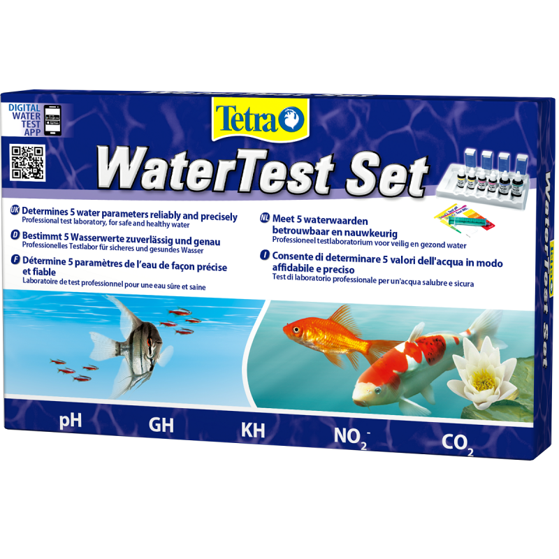 ערכה לבדיקה מדויקת של ארבע פרמטרי איכות המים החשובים ביותר: קשיות מים כללית (GH), קשיות פחמנית (kH), ערך הגבה (pH) למים מתוקים ורמת ניטריטים (NO2).