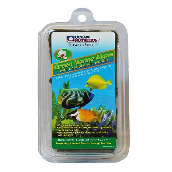 אצות ים ירוקות מהוות מזון טבעי מזין במיוחד, עשיר בוויטמין C וקל לעיכול. מקור ההזנה האידיאלי להאכלה יומיומית של דגי מים מלוחים ומים מתוקים אוכלי עשב. המזון מועשר בתמצית שום טבעית המתאימה גם לדגים בררנים ומשפרת את תפקודה של המערכת החיסונית.