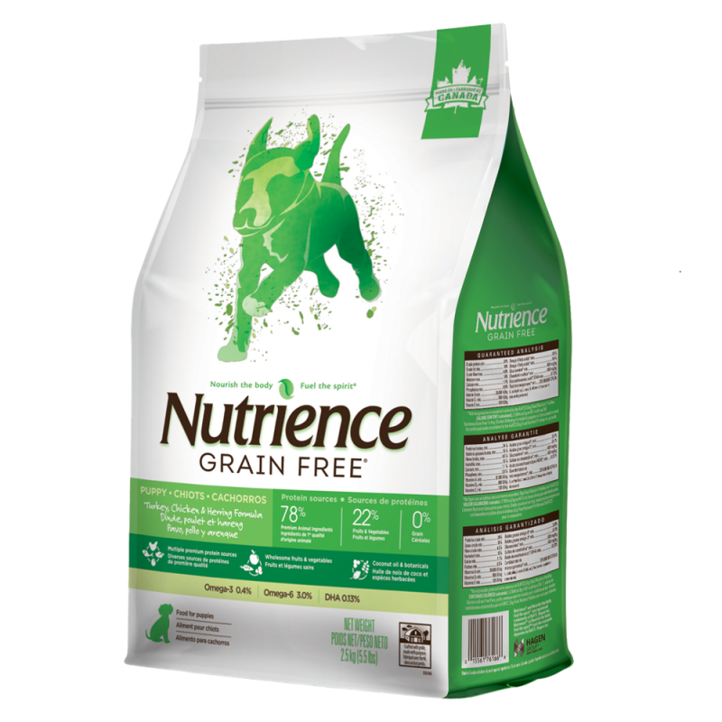 מזון יבש לגורי כלבים מכל הסוגים מבשר הודו, עוף ודג הרינג, ללא דגנים, עומד בתנאים המחמירים של ה-AAFCO ומתאים להאכלת גורי כלבים מכל הסוגים, ומהווה גם תמיכה תזונתית לנקבות במהלך הריון או הנקה, כולל כלבים בוגרים מגזע גדול (30 ק"ג ומעלה).