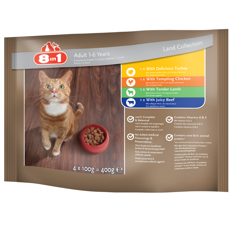 מזון 8in1 עשוי בקפידה רבה ומתאים לכל שלבי חייו של החתול.